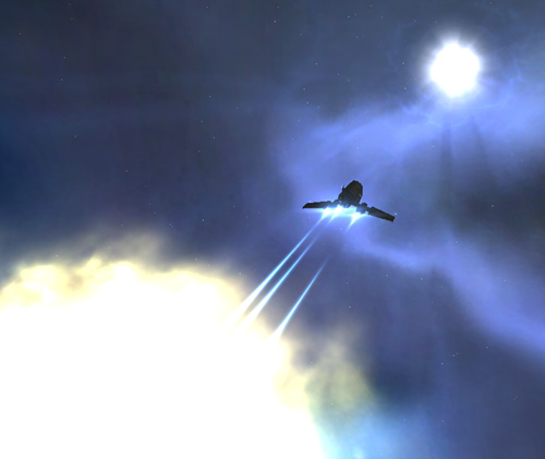 SforzaのShuttleが急速反転上昇、Oreの詰まった泥棒のCargoに巡航速度で接近、無停止