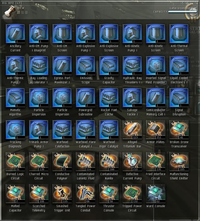現在、多種多様な部品の所持総数は200+。Rig1個生産の為には3種